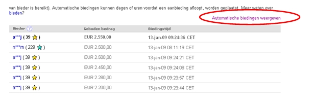Er lijkt trouwens iets niet te kloppen aan de biedingen, blijkbaar bied dezelfde persoon constant tegen zichzelf :?