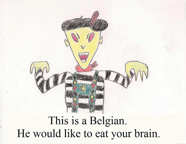 Nu ja , los van het feit dat zo'n boek met zo'n inhoud niet echt iets voor kinderen vraag ik me wel af wat voor beeld de wereld heeft van belgie ... :? |