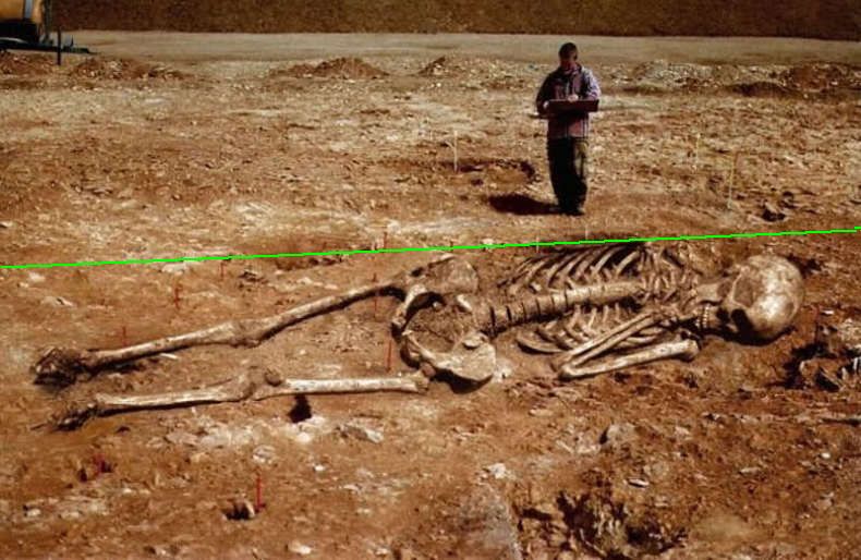 Dat de foto bewerkt is doet niets af aan het feit dat er dergelijke skeletten gevonden zijn tijdens opgravingen. Er zijn ook andere foto's daarvan te vinden. Het punt is dat er gerefereerd wordt aan documenten die erop wijzen dat zulke overblijfselen doelbewust vernietigd werden in naam van de evolutietheorie. Hechten jullie wel waarde aan documenten die daarop wijzen? |