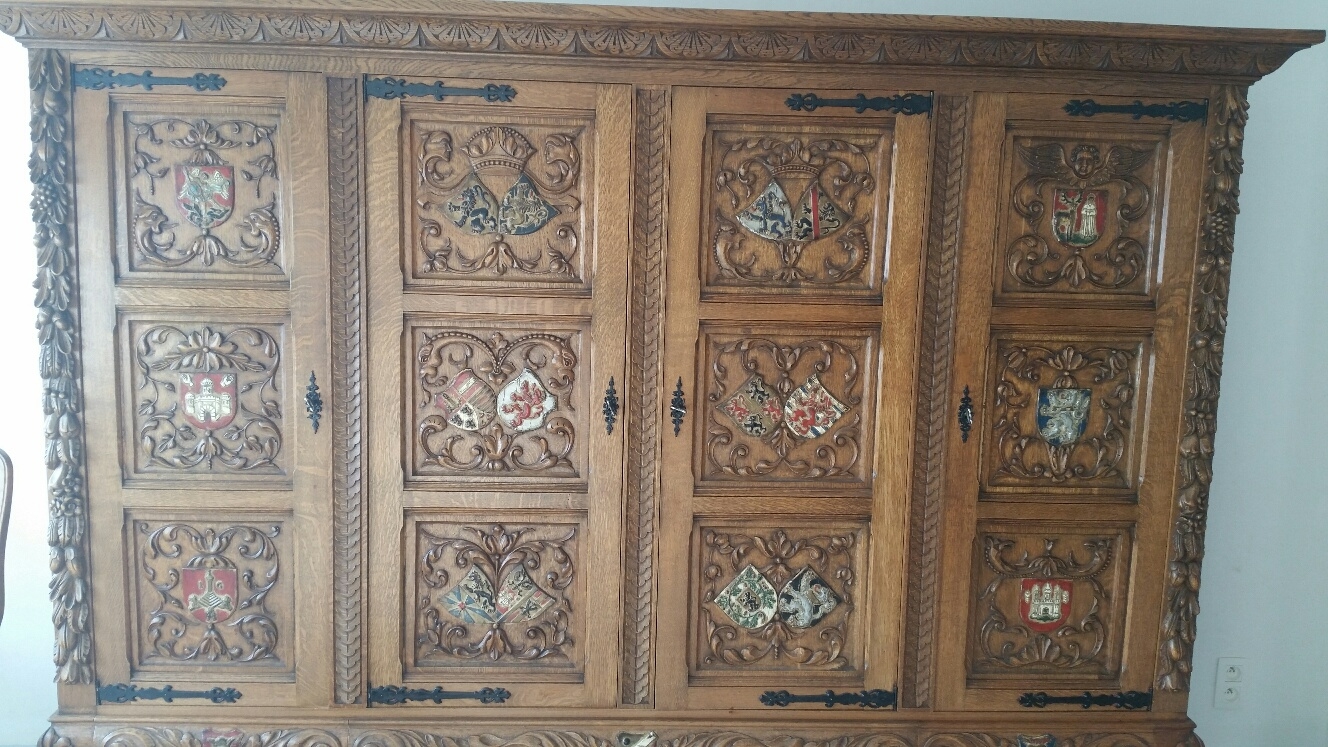 Ik ben via familie in het gelukzalige bezit geraakt van een antieke kast. Die kast is voorzien van in hout ingesneden wapenschilden. Ik herken er niet veel; om niet te zeggen, amper twee. Dat van Antwerpen; en dat van Brussel.