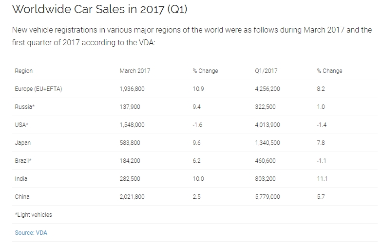 ![]() (bron: International Organization of Motor Vehicle Manufacturers) Trouwens, in de VS daalt de verkoop van Tesla Model S'en (-5% Q1 '17 tov Q1 '16) enkel Model X zorgt voor de stijging, wat een relatief nieuw model is. En zelfs binnen het SUV segment zijn er sterkere stijgers dan de model X, (o.a. Mercedes GLS). |