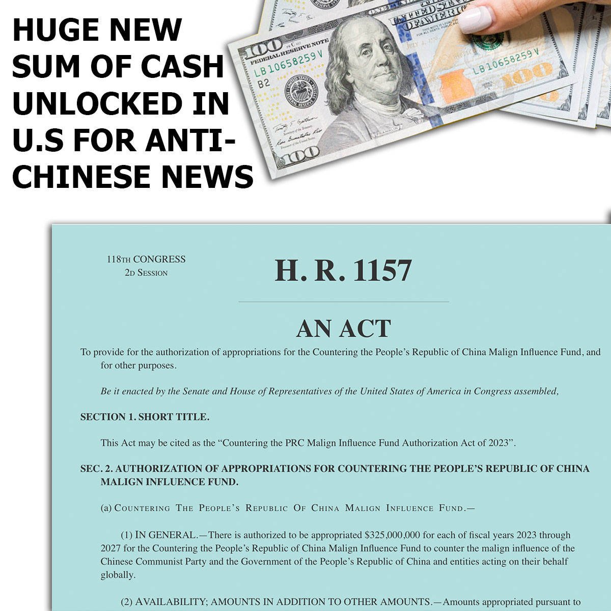 Dat is het massale bedrag dat het VS regime voorziet om in het buitenland de bevolking via hun media tegen China op te zetten. Verwacht nog meer fake news en valse vlaggen.