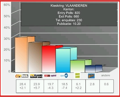 trouwens als men enkel in de kernstad gaat exit-pollen dan kan je idd zulk slecht resultaat voro het VB uitkomen omdat het Vb daar gewoowneg traditioneel slecht scoort; het Vb haal monsterscores ind eurne , hoboken, merksem, ekeren etc. NIET in de kernstad. Daar wonen meer vreemdelingen als wat anders