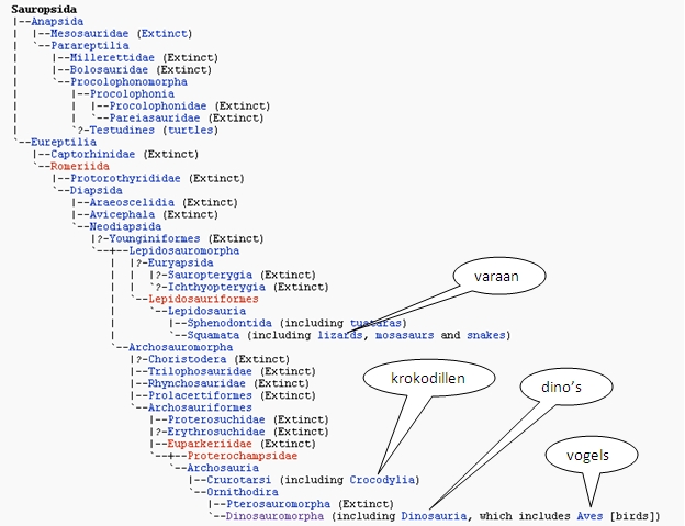 Deze staan evolutionair dichter bij de dinosauriërs dan de krokodillen. (Lees hier.) Ik heb de varaan nooit zien omschrijven als een dinosauriër. De varaan is een hagedis, en staat evolutionair nog verder van de dinosauriërs dan de krokodillen. Niemand ontkent (uiteraard) dat krokodillen bestaan. Alle toen nog bestaande dinosauriërs (behalve de vogels, zo je wil) zijn aan het einde van het Krijt uitgestorven. Dat is in elk geval de huidige wetenschappelijke consensus. Hier een overzicht (Wikipedia): Bijlage 26484 |
