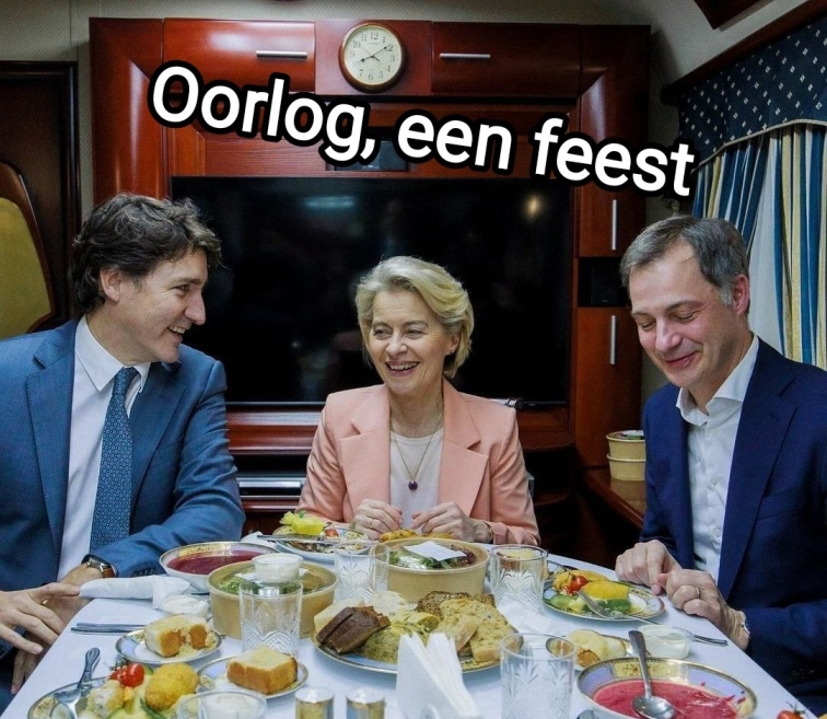 die andere dweil vd EU-commissie misschien, hier gezellig samen op de trein naar Kiev :