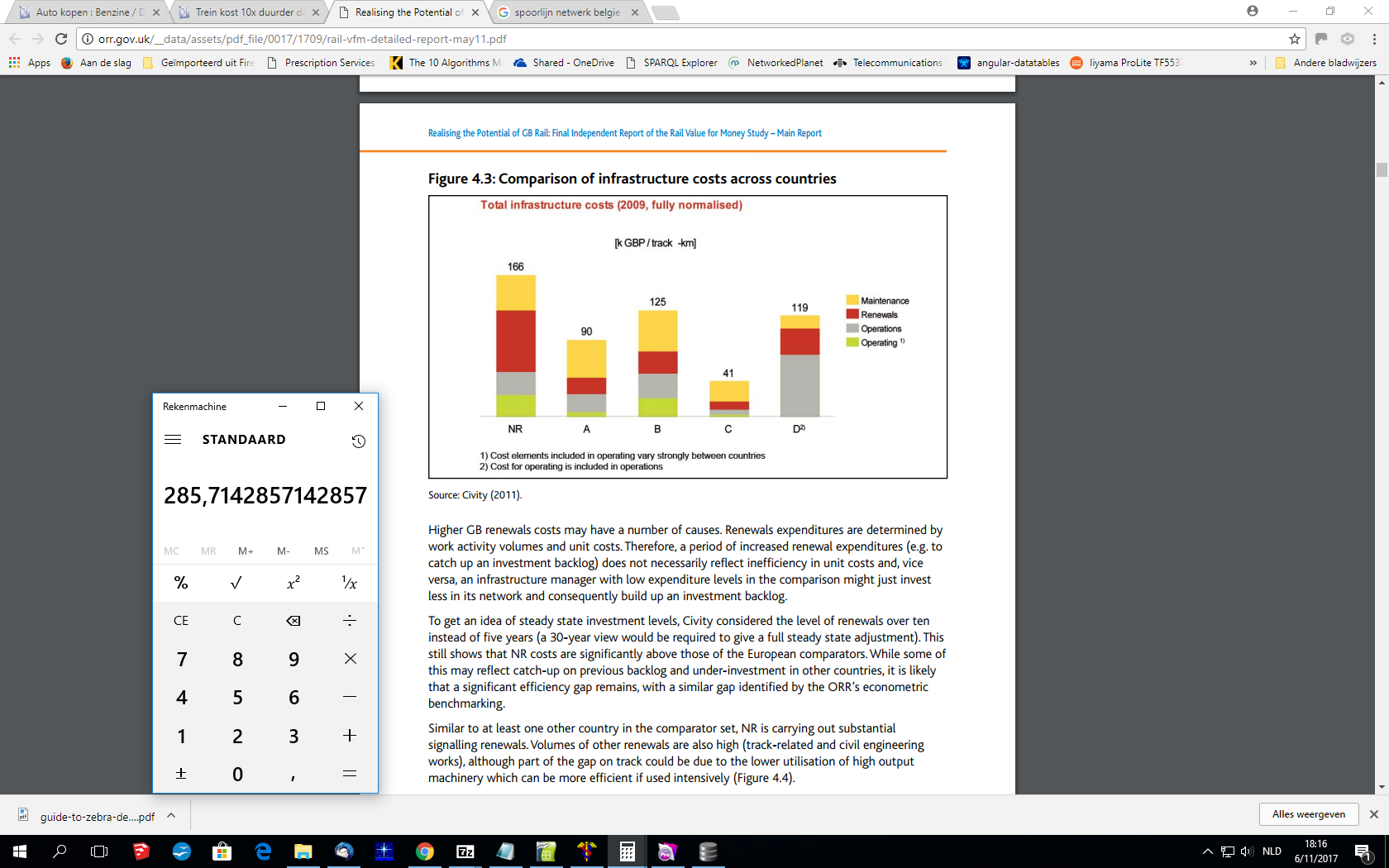 het Belgische spoor kost 1miljard / 3400km=285.000euro per km... wat een efficientie. Duurste infraxkosten van europa... tot 3x duurder... voila... al een eerste bewijs dat het spoor dweilen met de kraan open is..