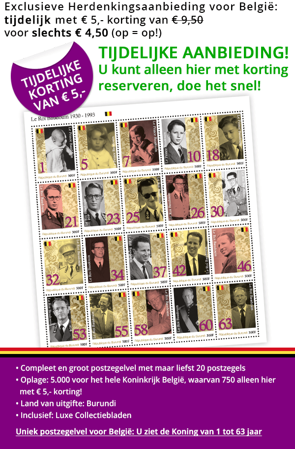 De herdenkingszegels van hun geliefde Vorst Boudewijn worden uitgegeven door de Post van Burundi.