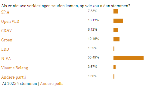 Er is toch wel één belangrijke tendens uit te halen: niemand praat nog over Lijst Dedecker. Veel kans dat die zijn stemmen bijna volledig naar N-VA verschuiven!