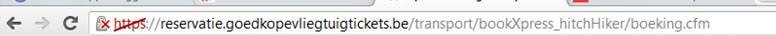 Bij het boeken van een vlucht via goedkopevliegtuigtickets.be kwam plots deze doorschrapte https te voorschijn, standaard procedure of helemaal niet?