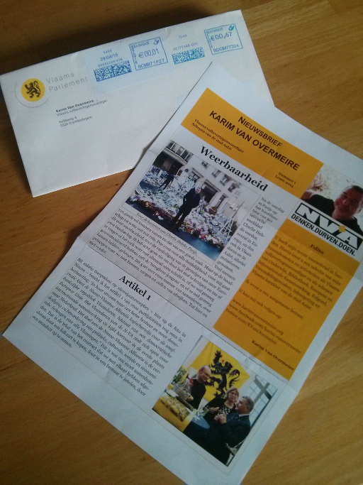 Standaard Politieke reclame verzonden met enveloppe Vlaamse Overheid - N-VA