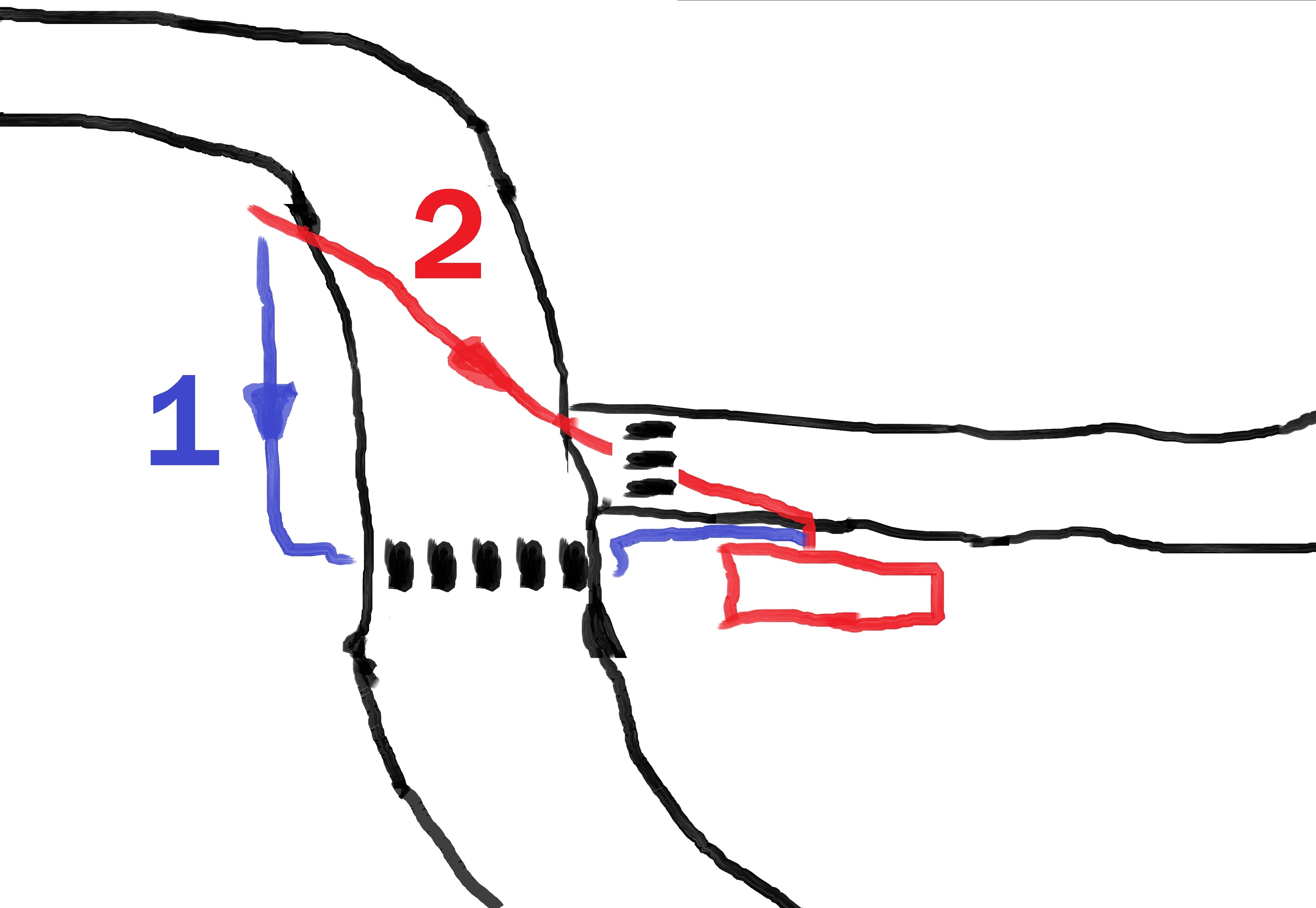 En zijn rekeningen betalen zoals hij fietst, vooruit, dat doet hij ook fout. Oversteken als en wanneer er niks aankomt is vaak best prima. Het scheelt de volgende chauffeur die langs komt nog tijd ook, staan die niet voor een rood licht wanneer dat licht eindelijk besluit om jou over te laten steken. P.S. Ik vind het wel knap in dat plaatje dat jij met je blauwe lijn in een sprong die hele zebra voorbij komt. Heb je al eens aan de Olympische spelen gedacht?