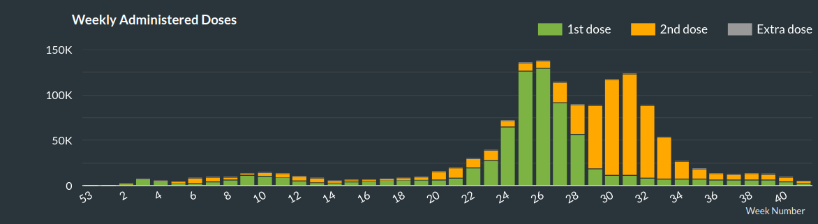 Maar we vinden die dubbele bobbel wel terug bij vaccinatie, zij het met enkele weken (3 of 4) verschuiving. |
