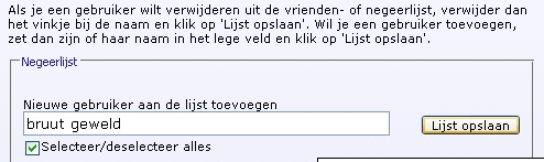 Hoe zet je trouwens iedereen op een negeerlijst?