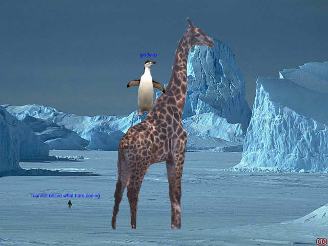 ![]() Zoals we allemaal weten, stijgt warme lucht. Giraffen lijken me dan ook volledig aangepast aan het klimaat van Antarctica.