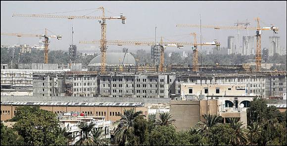 VS ambassade in Irak. De nieuwe telg. 5700 'werknemers', zo groot als vaticaanstad. 6 keer zo groot als de VN in New York. De Irakse regering droeg de gronden over 'under an agreement whose terms were not disclosed'. Is dit nog een 'ambassade' te noemen eigenlijk?