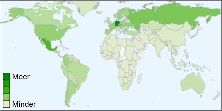 ![]() Klaarblijkelijk bestaat er op youtube een functie waarbij je van vele filmpjes statistieken kunt bekijken. O.a. in welke landen deze het meest worden bekeken.