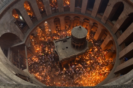 ![]() Binnen de Orthodoxe Kerk wordt ieder jaar op paaszaterdag van het Orthodoxe Paasfeest het mirakel van het Heilig Vuur gevierd in de Heilig Grafkerk in Jeruzalem.