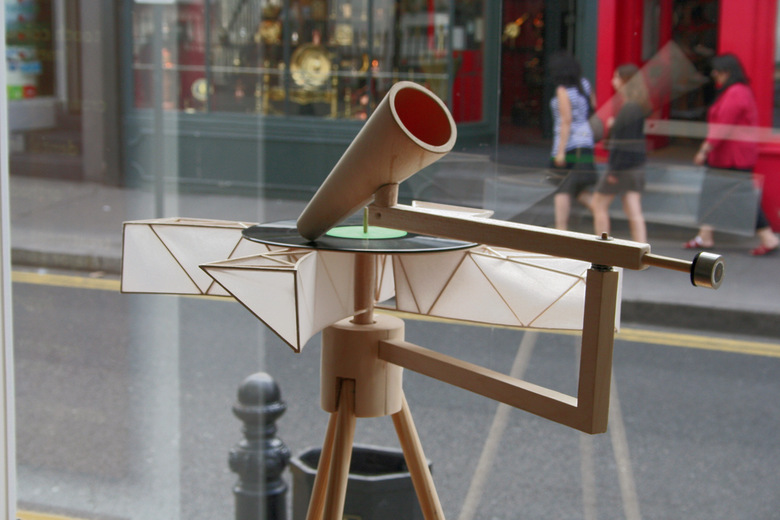 Created by audio engineering company GGRP Sound, this corrugated cardboard sleeve can be opened up and converted into a human-powered record player. The player allows you to turn the record via a pencil with detailed instructions printed on the sleeve itself. |
