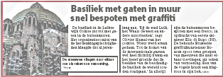"basiliek met gaten in muur snel bespoten met graffiti". Daarin wordt verteld hoe Di Rupo de gaten in de ruïne van de basiliek van Cointe snel liet camoufleren door er graffiti overheen te laten spuiten. Het artikel overleefde niet lang: het werd na een paar uur al verborgen. Hadden ze het geld van de herdenking niet beter besteed aan de restauratie van de basiliek?