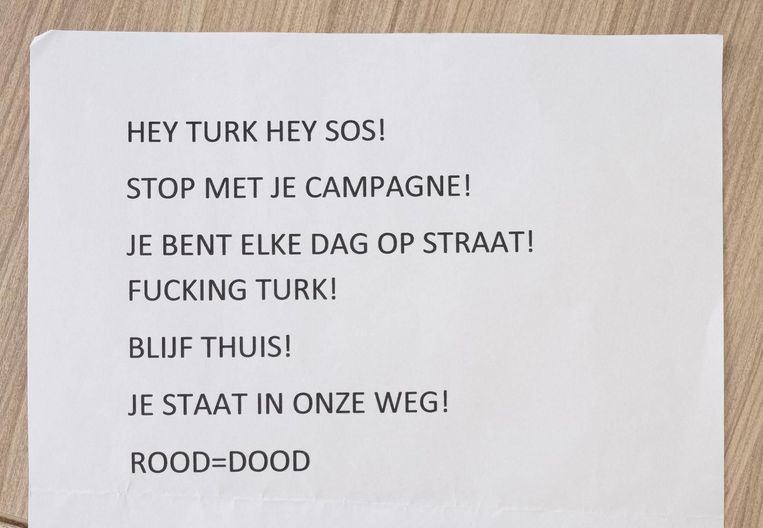 Een plaatselijke SPA politieker met Turkse roots en dubbele nationaliteit werd met de dood bedreigd via een briefje omdat hij veel op tour ging op straat en in cafés.