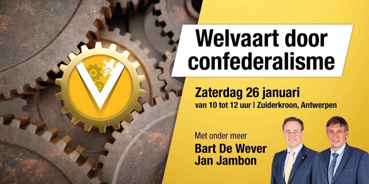 De eerste V-dag was een groot succes, we waren daar met 800 N-VA leden op een zaterdagmorgen bijeen gekomen in de Zuiderkroon. De zaal zat vol en men heeft mensen moeten weigeren . De N-VA leden hebben de rangen duidelijk gesloten in aanloop naar de volgende verkiezingen . "Eigen problemen aanpakken met eigen oplossingen en eigen centen. Dat is in essentie het confederalisme waarover de N-VA zaterdag haar eerste van vier V-dagen organiseerde. Jan Jambon, Ben Weyts, Sander Loones en Matthias Diependaele deden voor een volgelopen Zuiderkroon in Antwerpen de N-VA-visie op confederalisme uit de doeken. N-VA-voorzitter Bart De Wever oogstte met zijn afsluitende toespraak het slotapplaus." Laatst gewijzigd door Witte Kaproen : 26 januari 2019 om 18:56. |