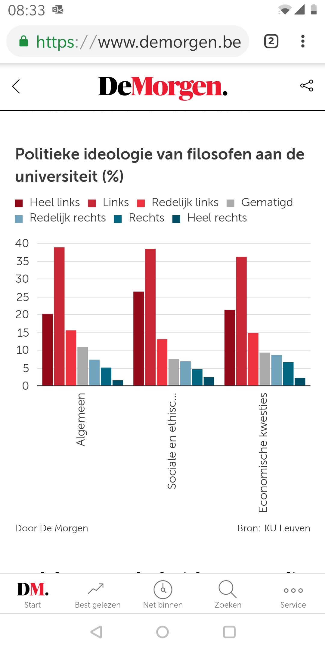 Filosoferen is voor mij zoeken naar de waarheid en die waarheid is noch links, noch rechts gebonden... Maar ja, ondertussen weet ik dat de definitie van 'zoeken naar de waarheid' ook al voorbijgestreefd lijkt te zijn... |