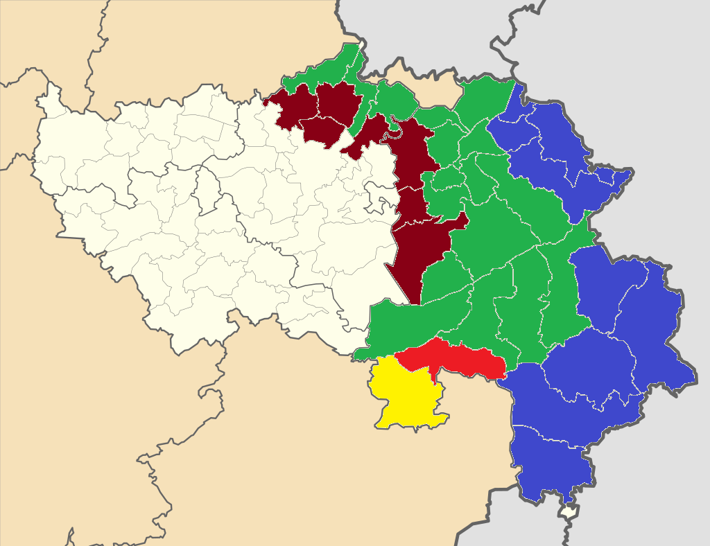 Naar aanleiding van de zalige gebeurtenis inzake het Vlaams geworden Driebruggen wordt nu ook een landbrug vanuit het Vlaamse achterland geëist zodat we ook gemakkelijker verder naar Lettenburg kunnen doorstoten. Voor de leden die de afgelopen maanden onder een steen leefden en nog niet op de hoogte zijn van het begrip "Lettenburg". Lettenburg is de onverschoven en dus rein Nederlandse evenknie voor het verschoven en dus Hoogduitse Lützenburg ofte Lëtzebuerg, jammer genoeg beter bekend onder de ontaarde (verwaalste) benaming "Luxembourg". Ik stel de onderstaande, bescheiden landbrug voor (groen): Bitsingen (Bassenge) met Beur (Boirs), Eumes-Emaal (Eben-Emael), Glaaien (Glons), Rukkelingen/Jeker (Roclenge-sur-Geer) en Wang (Wonck) Wezet (Visé) met Erkenteel (Argenteau), Geraat (Cheratte), Lieze (Lixhe), Rijkelt (Richelle) en Ternaaien (Lanaye) 's-Gravendalem (Dalhem) met Bern (Berneau), Bolsbeek (Bombaye), Elbelen-Nieuwenburg (Aubin-Neufchâteau), Sint-Andries (Saint-André) Aubel met De Kluis (La Clouse), Godsdal (Valdieu) en Sint-Jans-Raat (Saint-Jean-Sart) Blieberg (Plombières) met Homburg (Hombourg), Montsen (Montzen), Moresnet, Gemmenik (Gemmenich) en Sippenaken (Sippenaeken) Welkenraat (Welkenraedt) met Hendrikskapelle (Henri-Chapelle) Balen/Wezer (Baelen-sur-Vesdre) met Membeek (Membach) Limburg/Wezer (Limbourg-sur-Vesdre) met Bilsteen (Bilstain), Dalem (Dolhain), Gulke (Goé), Hemersberg (Hèvremont) Diezen (Dison) en Hendriksberg (Andrimont) Wervik/Wezer (Verviers) met Lambrechtsberg (Lambermont), Klein-Rijkem (Petit-Rechain) en Steenberg (Stembert) Gellet (Jalhay) met Raat (Sart) Spei (Spa) Weims (Waimes) met Aussenborn (Faymonville), Terbievelt (Robertville) Malmder (Malmedy) met Engelsdorp (Ligneuville) en Schoondaal (Bellevaux) Stavel (Stavelot) met Vrankerveld (Francorchamps) Stoutberg (Stoumont) met Rodenkerk (la Gleize) mogelijk uitgebreid met (bruin): Nudorp (Wihogne) Pede (Paifve) Jupernel (Juprelle) Lenten (Lantin) Laar (Liers) Simoenswilder (Villers-Saint-Siméon) Ves-Slijn (Fexhe-Slins) Hermede (Hermée) Hermaal (Hermalle-sous-Argenteau) Walsheur (Heure-le-Romain) Houtem (Houtain-Saint-Siméon) Herstal (Waalse uitspraak: Hèsta vgl. Herstapel = Hè[r]stappe) Blennik (Blegny) Herf (Herve) Groot-Rijkem (Grand-Rechain) Batis (Battice) Schenderlaken (Xhendelesse) Pippensraat (Pepinster) Daken (Theux) Toekomstig doorstootgebied richting Lettenburg (geel): Ledernaken (Lierneux) met Wittenborn (Arbrefontaine) en Bracht (Bra) De Duitstalige Gemeeschap en de gemeente Driebruggen zijn achtereenvolgens in het blauw en rood aangeduid. Hoogachtend