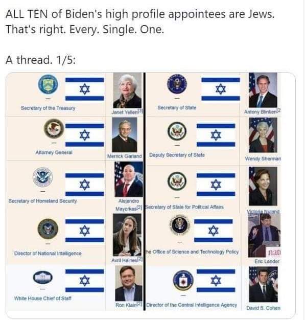Een populaire sociale mediagroep, die waarschijnlijk banden heeft met het regime van de Turkse president Recep Tayyip Erdogan, tweette in het weekeinde dat Joden 'over?*vertegen?*woordigd' zijn in het Witte Huis van Joe Biden. Volgens de tweet maken Joden slechts 1% uit van de Amerikaanse bevolking, maar 50% van het kabinet van president Joe Biden. Hoewel Biden inderdaad een aantal Joden op topposities heeft benoemd, zitten er in werkelijkheid maar een paar in zijn kabinet. http://www.israeltoday.nl/NewsItem/t...L/Default.aspx Hoeveel Koerden zitten er in Erdogan's regering? hoeveel Suryoye, en Armeniërs? |