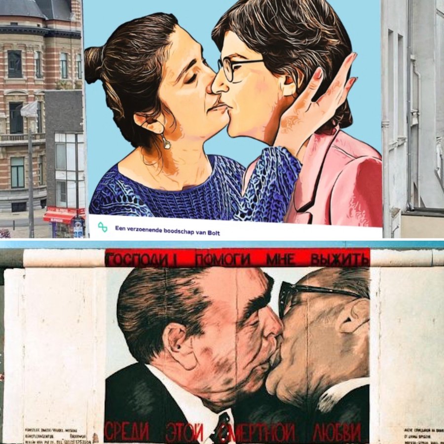 Op een gevel in Antwerpen is een muurschildering verschenen van Vlaams minister van Energie Zuhal Demir (N-VA) en federaal minister van Energie Tinne Van der Straeten (Groen) die elkaar innig kussen. Het werk is in opdracht van een energiebedrijf gemaakt. De muurschildering is verschenen op een gevel op de hoek van de Leopoldstraat en de Leopoldplaats in Antwerpen. Het was journalist Tom De Smet die het als een van de eersten opmerkte tijdens een ochtendwandeling. Hij plaatste het opmerkelijke beeld vanmiddag al op zijn Twitterprofiel: Wat hier de bedoeling van is, mag Joost weten. Zuhal en Tine botsten nogal eens als het ging om energie en energiezekerheid. Zuhal hield daarbij altijd de regelgeving voor ogen. Tine had het meer voor het groene antiekernenergiedogma. Volgens mij een wereld van verschil en het is dan ook moeilijk maar niet onmogelijk dat deze twee personen een akkoord kunnen sluiten. Hier Zuhal haar eigen woorden (Twitter) Communistische broederkussen zijn zelden goed nieuws voor de bevolking. Ik hoop dat onze samenwerking op basis van feiten en gezond verstand verloopt en niet op ideologische liefde. Verder wel een mooie ‘love is love’ campagne. |