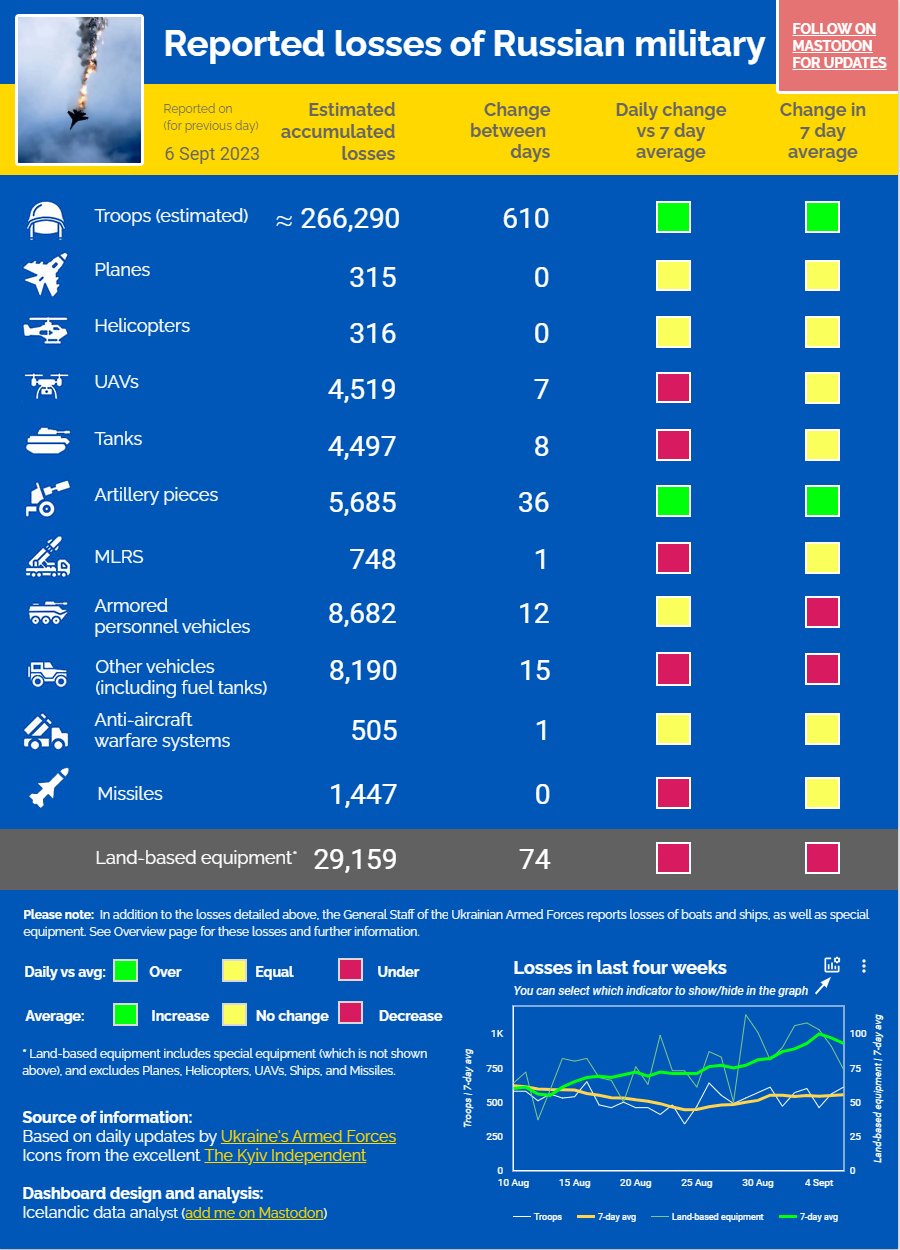 |   je ziet van hier aan het tempo dat de verliezen zich opstapelen dat het russisch leger geleidelijk aan moet gedemotiveerd geraken, die 2200 is een ONDERSCHATTING en idd de oude brol uit hun oude voorraden die ze refurbishen zijn geen partij op het slachtveld, en het illustreert ook dat RU gewoon door zijn voorraden zit en hopeloos zoekt naar middelen 63% of 86 confirmed tank losses in August were tanks made before the fall of the USSR (again above the total ratio of 55%) based on data from @oryxspioenkop . Field reports indicate 225 losses in the period. de realiteit is het 4000