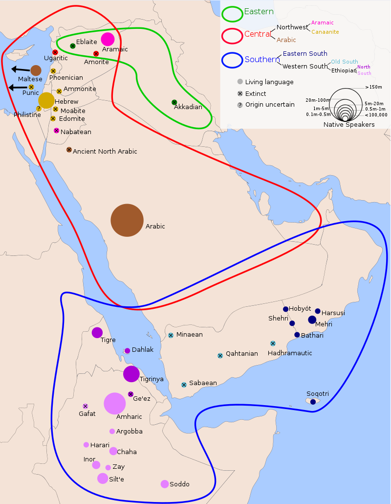Het wetenschappelijke gebruik van de term heeft echter betrekking op deNoteer, de historisch nauwe verwantschap tussen de taal die de Arabieren spreken en het taalgebruik in de Levant. Strikt gezien betekent anti-semitisme bijgevolg dat men een anti-houding aanneemt tegen de cultuur van de Semieten, de semitisch sprekende volkeren. Zie onderstaande afbeelding. (fig.: aanklikken om te vergroten, noteer de aanwezigheid van 'Philistine', min of meer t.h.v. de Gazastrook)
