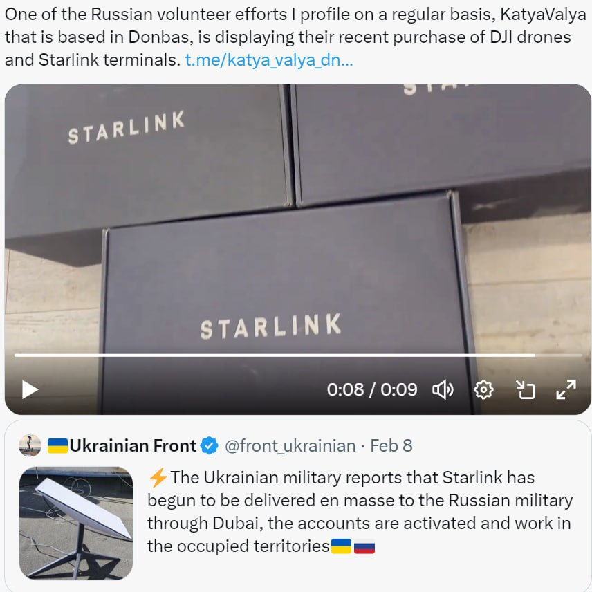 ![]() ![]() ![]() = = = Pentagon and SpaceX Respond to Reports of Russia Using Starlink LINK 9 feb 2024 = = = (fig.)
