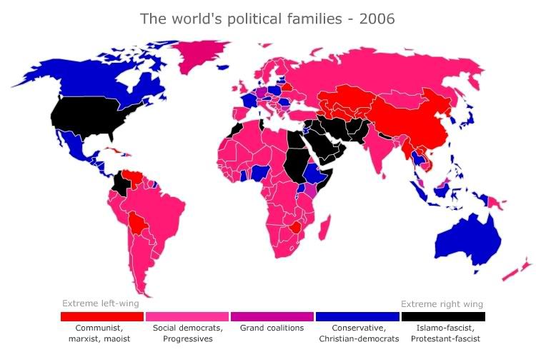 Standaard Een blik op de wereldkaart, na de 4 linkse overwinningen van dit weekend