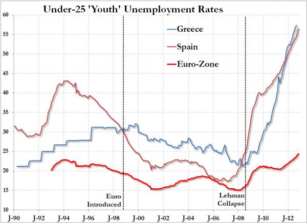 Inmiddels staat zowat 60% van de Griekse jonge afgestudeerden als "werkloos"....