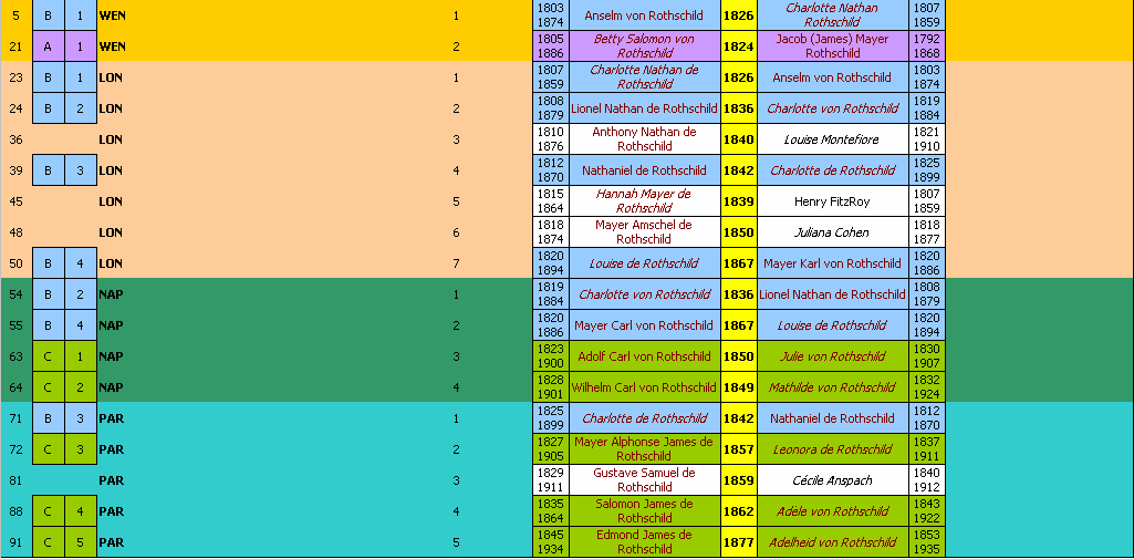 In bijlage vindt men een stamboom tot 4e generatie na stamvader Mayer Amschel Rothschild