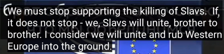 https://t.me/TheIslanderNews/4600 Een opvallende opinie in het Europees Parlement die men kan beschouwen als een gevolg van de attitude hier door sommigen toegejuicht om in Oekraïne slaaf tegen slaaf te laten vechten, denkend de derde hond te kunnen zijn in het zogenaamde 'westen'. Maar Radakovski zegt hier dat mensen zich wel eens langs andere lijnen zouden kunnen verenigen als dit zo verder gaat, waarbij de Europese eenheid in gevaar komt. Uiteraard heeft hij gelijk te kijken naar de VS als degene die hier een verdeel en heers spel tussen Europa en Rusland pogen te spelen, het meeste olie op het oorlogsvuur gegooid hebben, en een grote hindernis voor vrede zijn. Zonder de VS en hun gestook in Oekraïne was het nu geen oorlog in Europa is mijn opinie. En Europa zou er vrijer en welvarender voorstaan. Helaas wordt die opinie vooralsnog uit de VS gedomineerde Europese media gehouden, waar ook de meeste Europese politici toch hun boter vandaan halen. Pro VS brainwashing gegarandeerd. De lage handen lopen op dat gebied zelfs op kop in Europa. Deze vertaling is lichtjes anders dan die wat u gaf: Citaat: