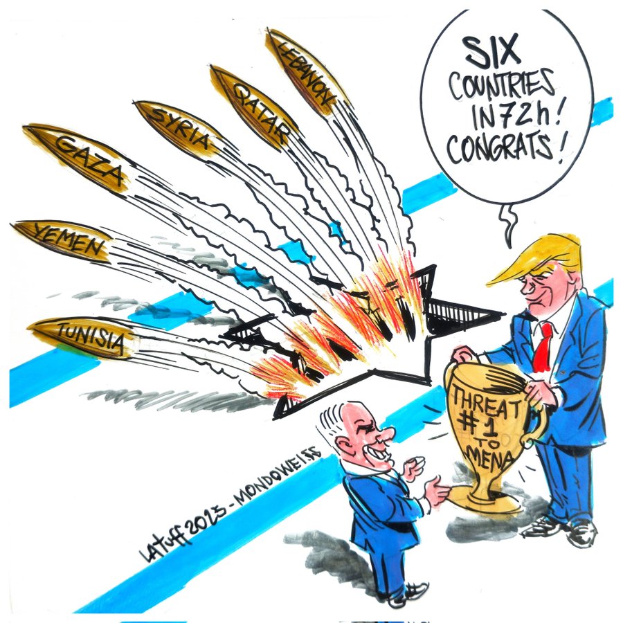 15 september 2025. 6 landen op 72 uren gebombardeerd door Israël. Maar Israël is degene die bedreigd wordt door de buurlanden zogezegd. Iets klopt hier niet. https://x.com/LatuffCartoons/status/1966695081122938972 Laatst gewijzigd door Bach : 16 september 2025 om 07:55. |