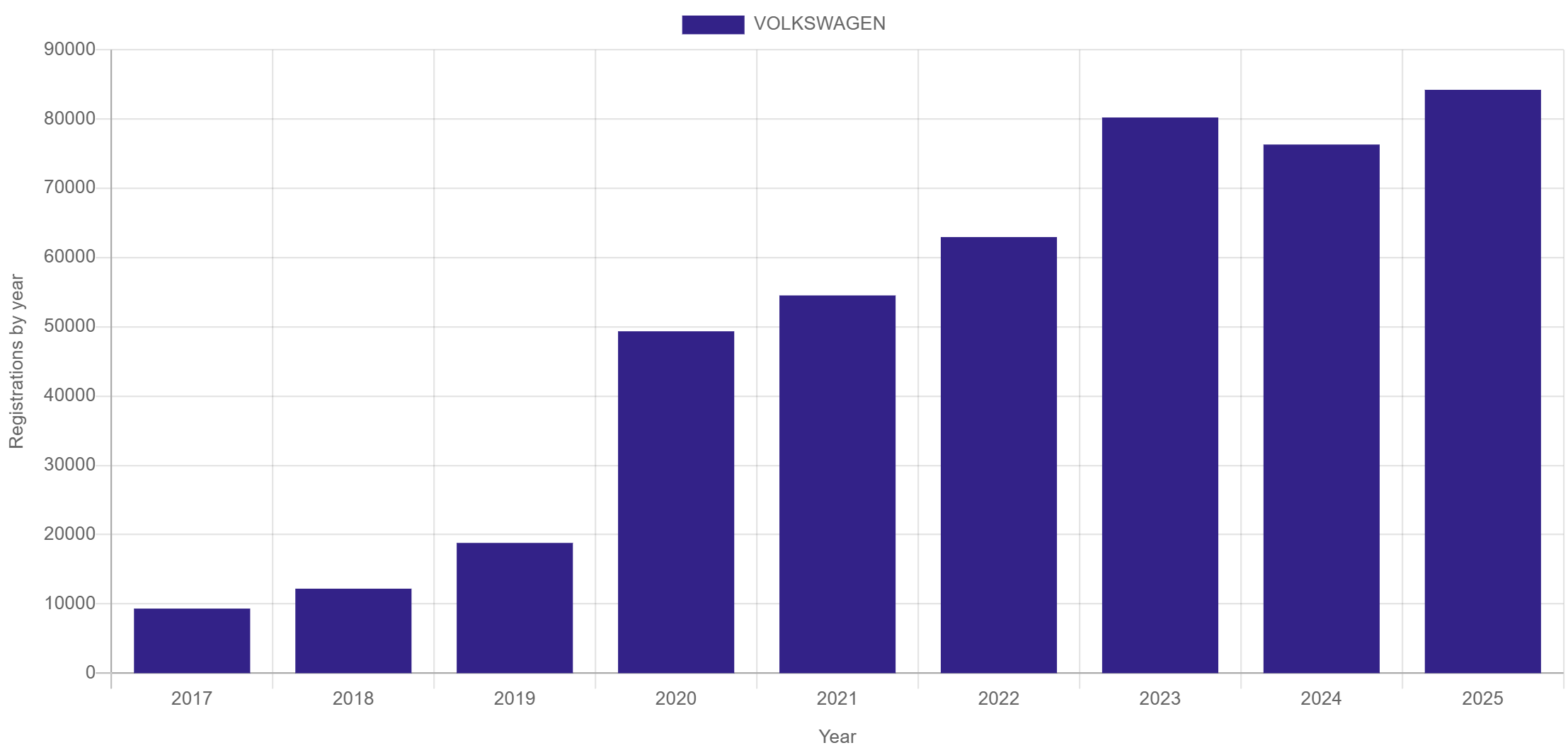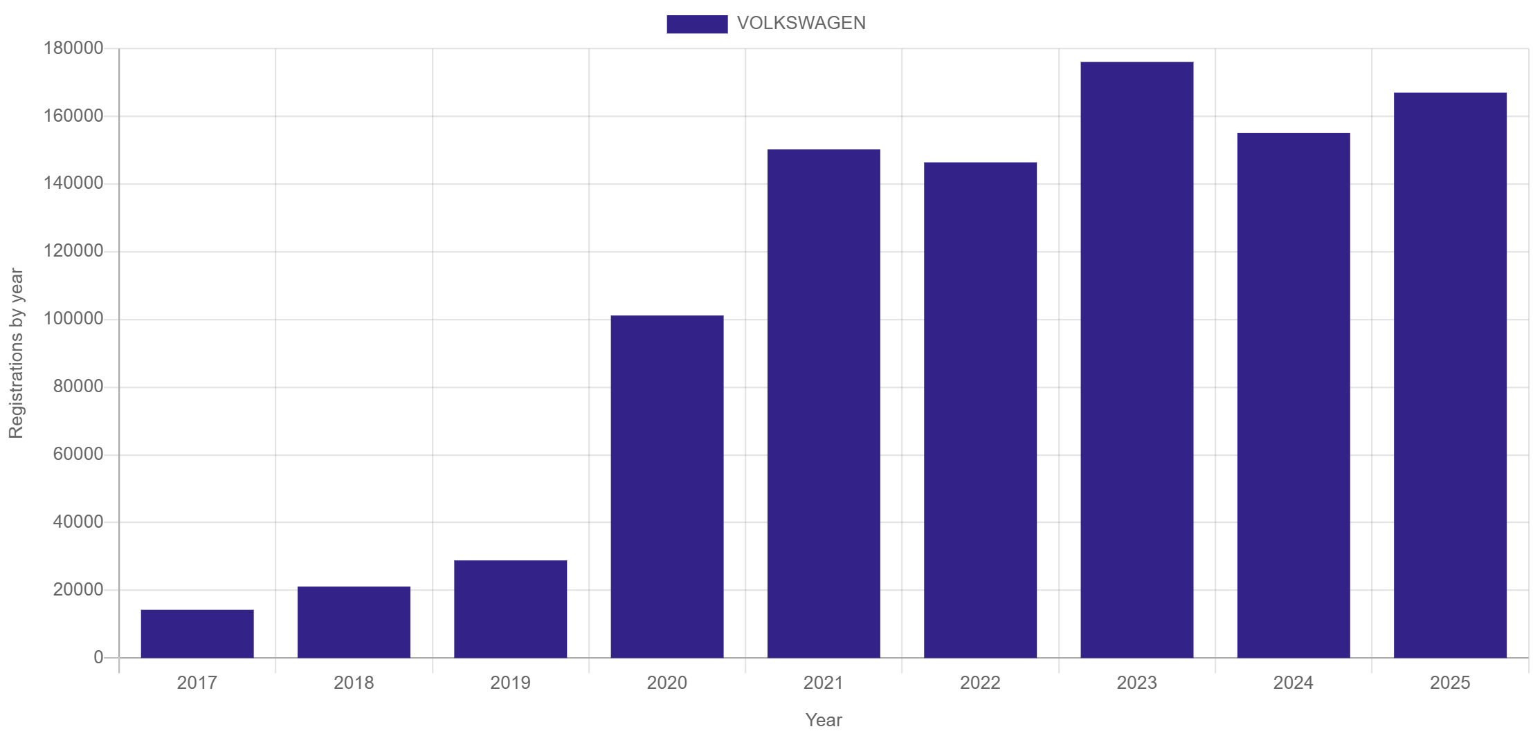 Ook de 9 maanden van 2025 doet Tesla ~5k beter dan VW: Citaat: