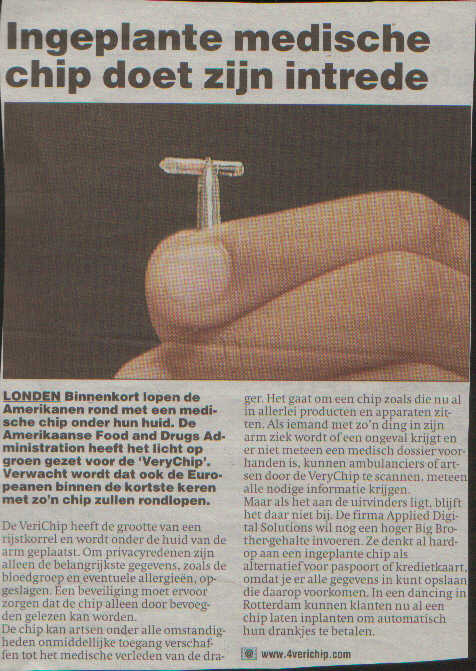 ![]() Er zijn nu reeds landen die kinderen chippen samen met de vaccinatie zonder meeweten en toestemming van de ouders.Singapore met zekerheid en naar alle waarschijnlijkheid ook nederland,duitsland en al eerder hiermee begonnen zij groot brittanie Maar dat zal men de gewone burger echt niet vertellen.