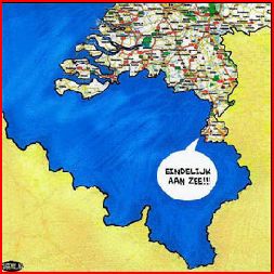 Daarom kunnen de tekeningen zich beter richten op de vraag "hoe verder na Belgie? Heel veel mogelijkheden zijn er niet ,dus dat is snel gemaakt. |