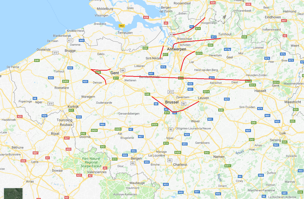 Voor Antwerpen de E313 vanaf StNiklaas verbinden met Liefkeshoektunnel, dat moet een majeure ontlasting geven van ring Voor Brussel een shunt tussen Aalst en Leuven die werkt als een soort superring maar zorgt dat een pak verkeer die op de E5 zit niet de ring neemt Die drie maatregelen moeten voldoende zijn om de mobiliteit op gang te trekken De subsidies aan de trein afschaffen en investeren in wegenbouw. Dus de aftrekbaarheid van het treinabonnement en het gratis treinabonnement afschafen voor ambtenaren en privé gelijk. |