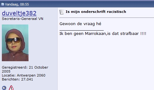 Bovendien moet het zijn "Marokkaan", en komt er n�* een vraag een vraagteken, niet vier uitroeptekens. Voor de rest prima onderschrift.