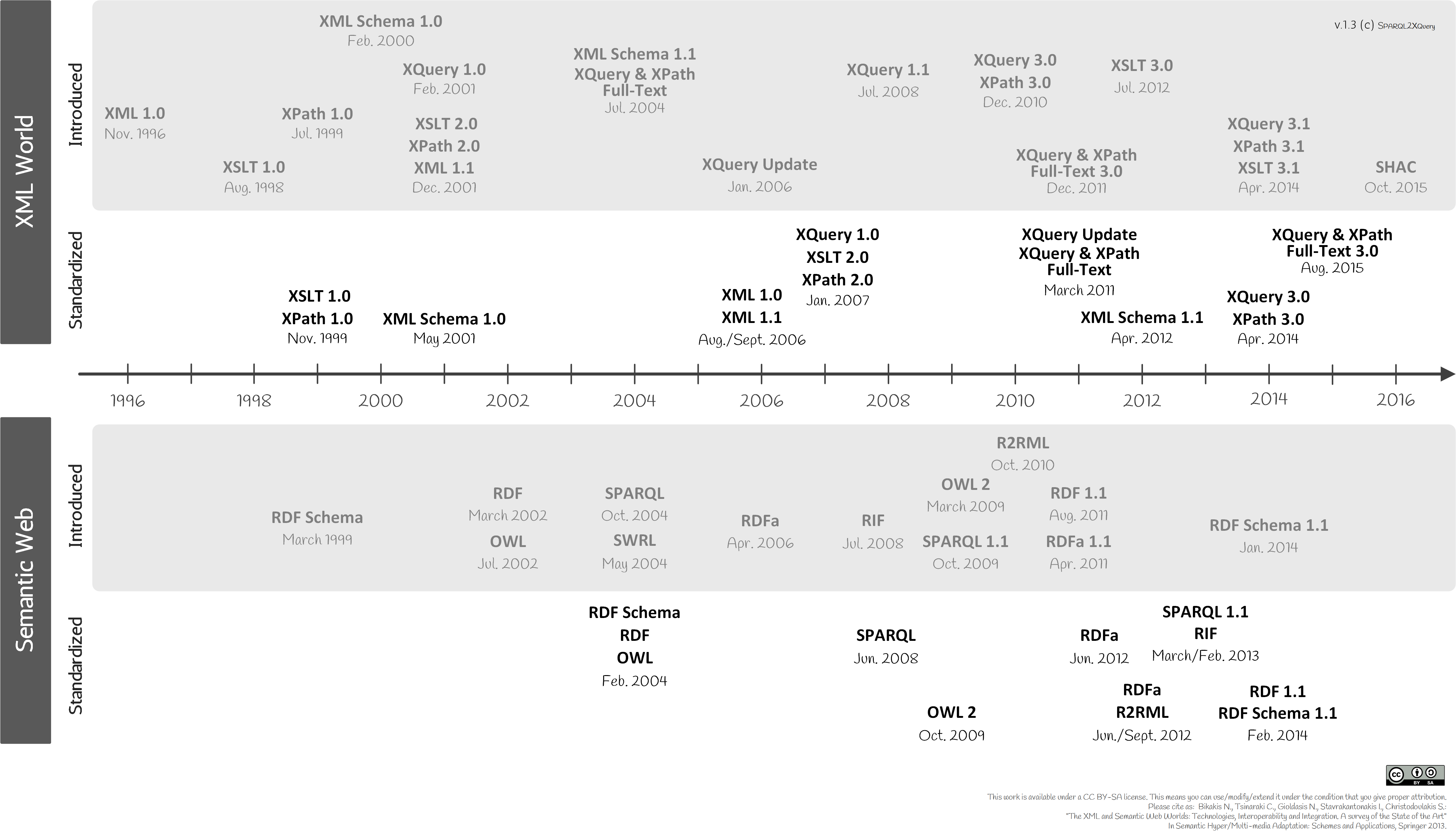 Semantisch web is nog iets anders. Het W3C of World Wide Web Consortium ontwikkelt standaarden mbt het semantisch web. Een tijdslijn van de standaarden mbt het semantisch web vind je hier. (fig.)