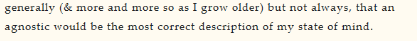 Hij kwam uit een zeer gelovig nest, hij volgde o.a. theologie aan het Christ's College van de universiteit van Cambridge. Men kan hem moeilijk als een atheïst bestempelen toch niet in zijn jeugd en adolescentie. Maar hij geeft hier toch duidelijk aan dat met het ouder worden agnost de meest correcte omschrijving is van zijn levensovertuiging. Als hij dat zo aangeeft porpo dan moet men dat ook respecteren.