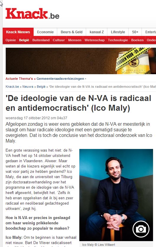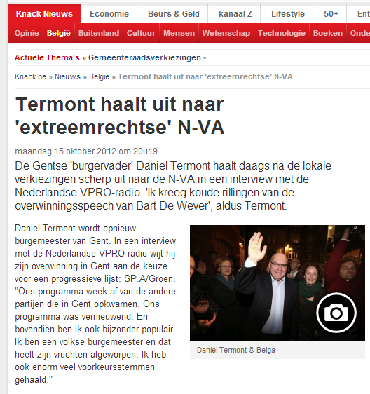 Het moet precies zeer doen dat de NVA grote vooruitgang heeft geboekt in deze verkiezingen.(alsof we dat niet hadden zien aankomen) Ik heb toch de indruk dat er veel slechte verliezers zijn in het politiek landschap. Maar denk ik dan, zijn we echt niet geleerd uit het verleden. NVA bashen heeft alleen maar het omgekeerde effect en maakt de partij alleen maar sterker. |