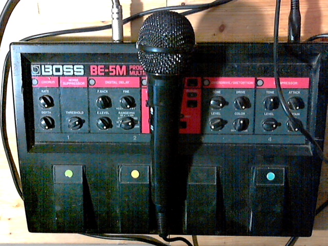 Voorbeeld: Micro => distortion => versterker http://www.youtube.com/watch?v=zsMHVvpZ3Wg Of micro => multi-gitaareffecten => computer of versterker