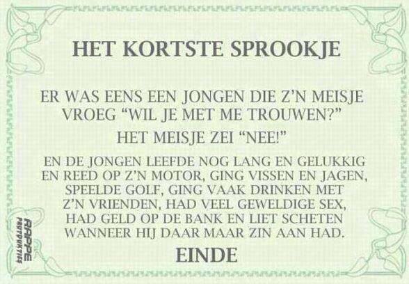 dat was maar voor te lachen hoor. Alhoewel, stel je voor dat je kersverse bruid nu al niet meer mee zou willen .... .