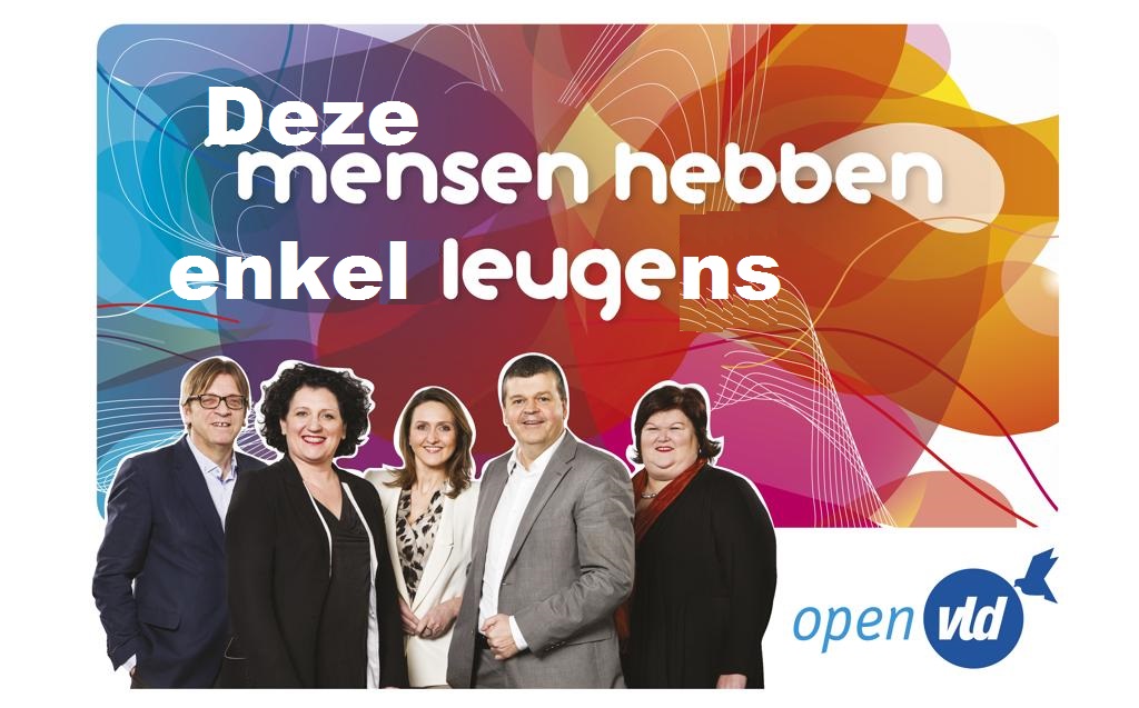 Meteen gevolgd door de O-VLD met de slogan : "dankzij u aanwezig en actief". Doet me meteen denken aan de meest debiele slogan ooit : "Respect!" destijds van de tseven. Ja, ja, het zal wel. Belediging op belediging van de intelligentie van de burger.