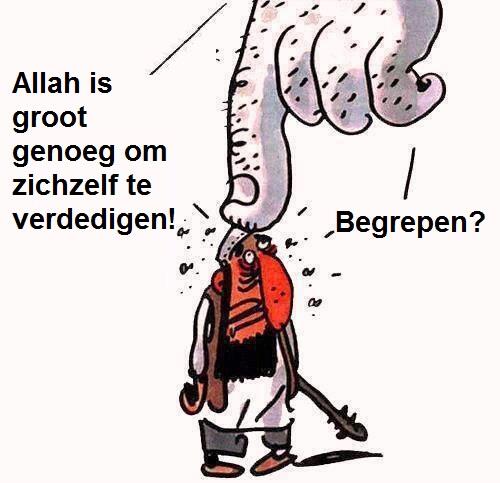 ![]() Als hij doodgeschoten wordt, is 't Allah zijn wil en als hij niet doodgeschoten wordt, is 't ook Allah zijn wil.
