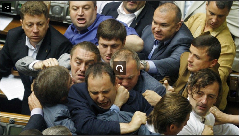 Beelden van gisteren dinsdag in het parlement van Oekraïne.